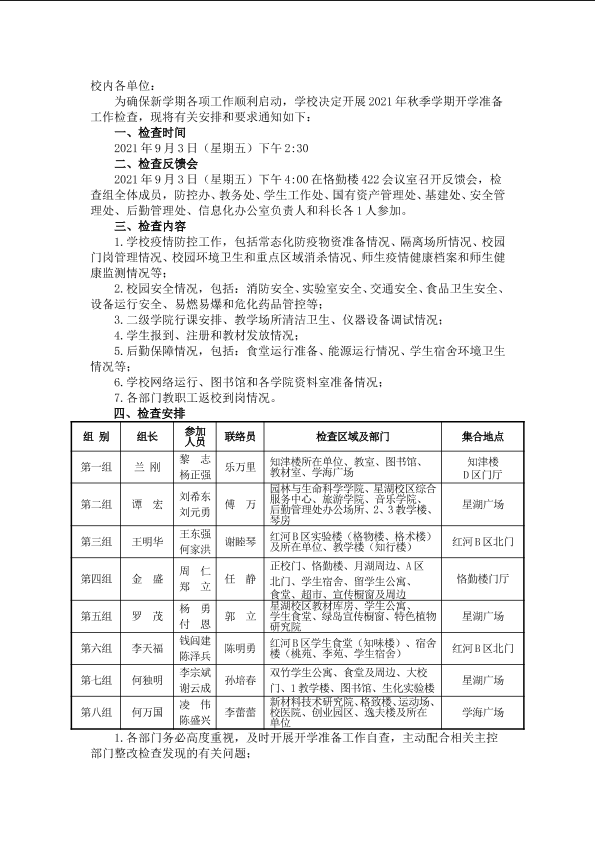关于开展2021年秋季学期开学准备工作检查的通知