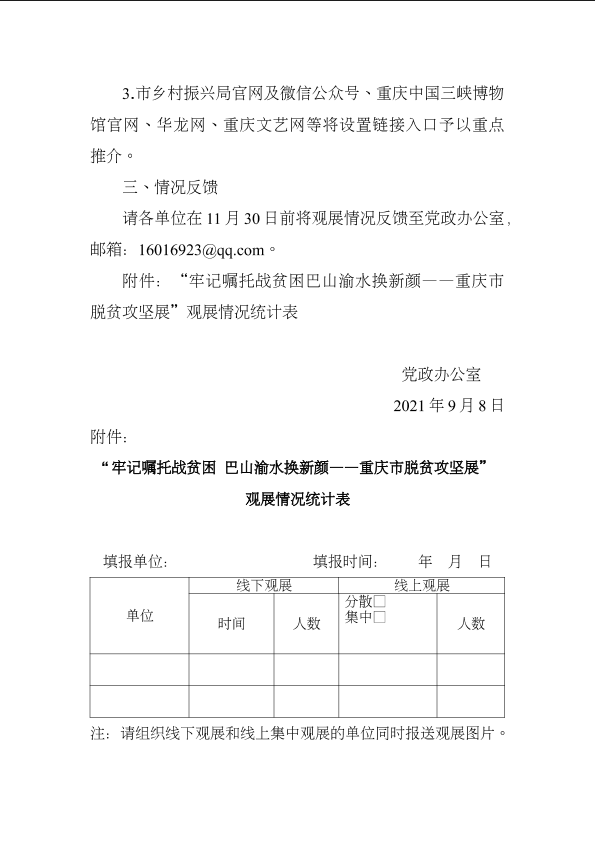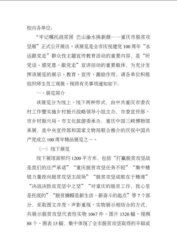 关于组织观看“牢记嘱托战贫困 巴山渝水换新颜——重庆市脱贫攻坚展”的通知